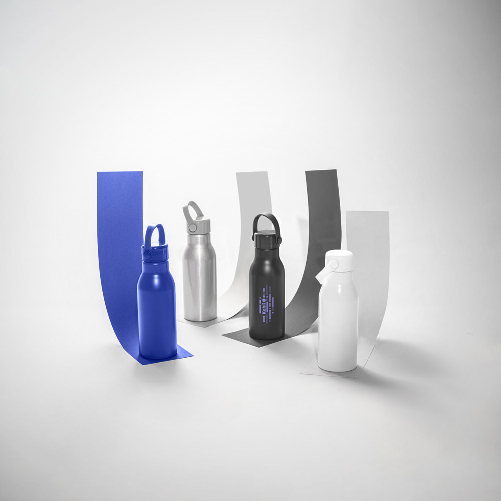 ♻️ Squeeze | Garrafa em alumínio 100% reciclado com parede simples e acabamento mate. Tampa em PP com pega de silicone para fácil transporte. Capacidade até 700 mL. Fornecido em caixa presente em papel kraft. Certificação EU Food Grade. ø73 x 213 mm.