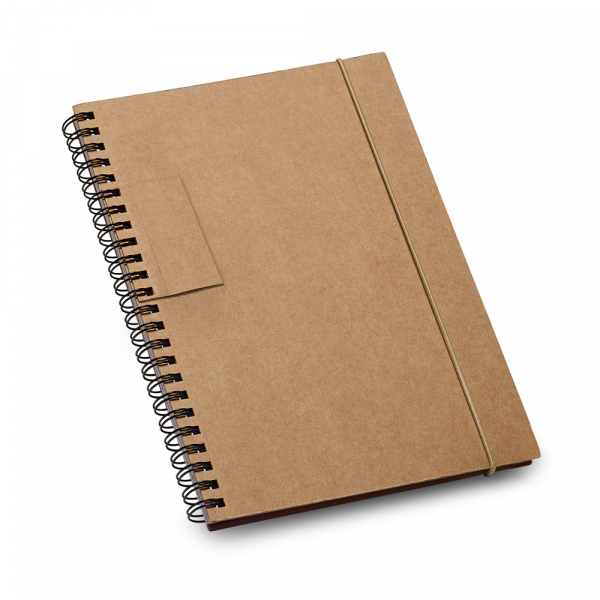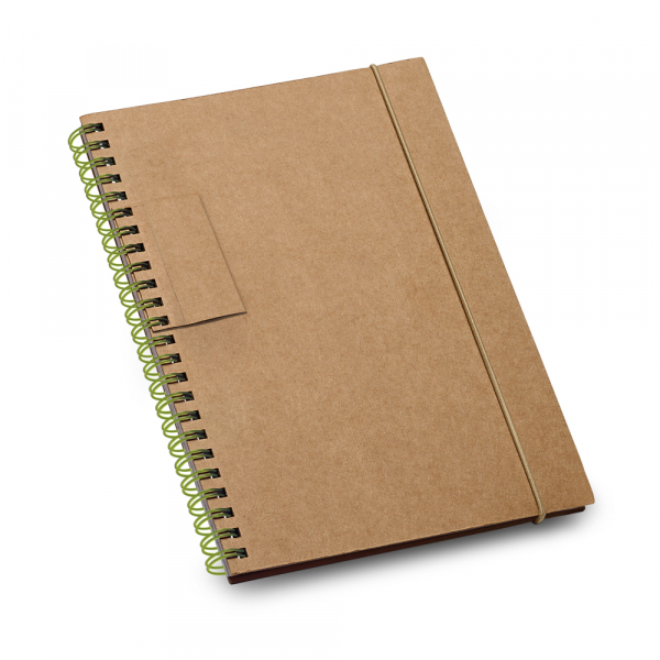 Caderno capa dura. Com 60 folhas pautadas de papel reciclado. Esferográfica não inclusa. 140 x 180 mm