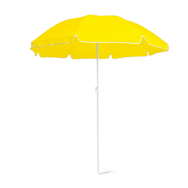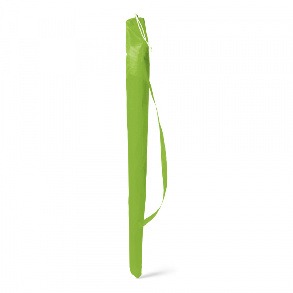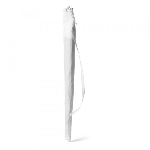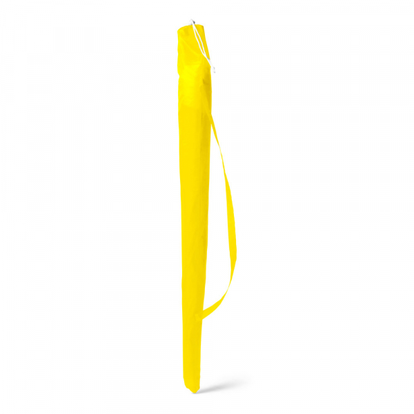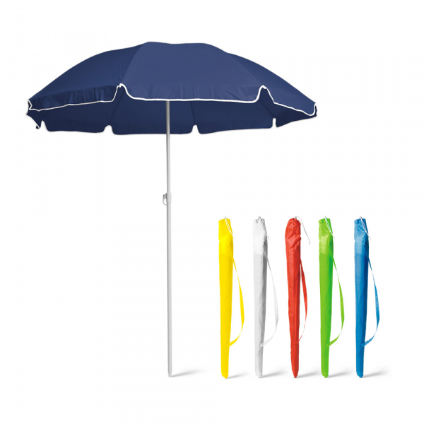Guarda-sol em poliéster fornecido em bolsa com alça de fácil transporte.