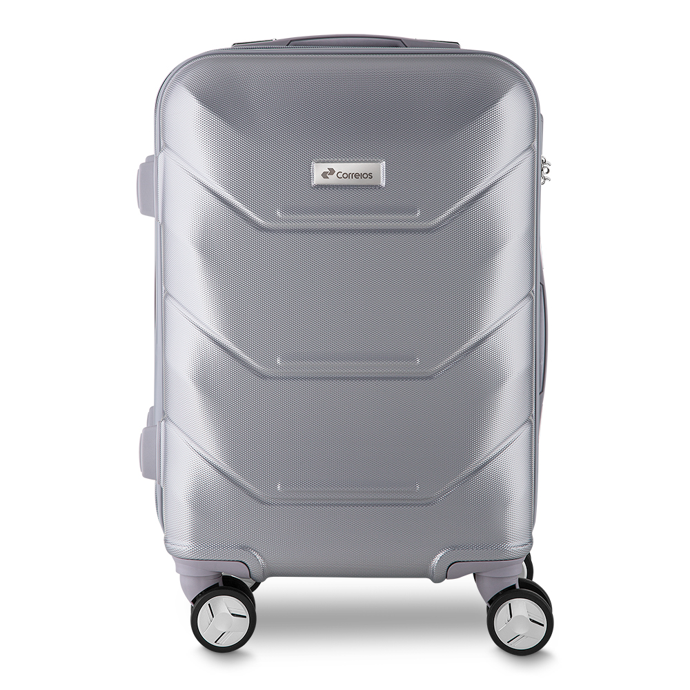Mala de bordo em ABS (Estireno de acrilonitrilo e butadieno). Forro em poliéster com sistema de carrinho de aço. Alça de mão na lateral e na parte superior. Quatro rodas de 360 graus. Acompanha Plaquinha de metal sem personalização.
