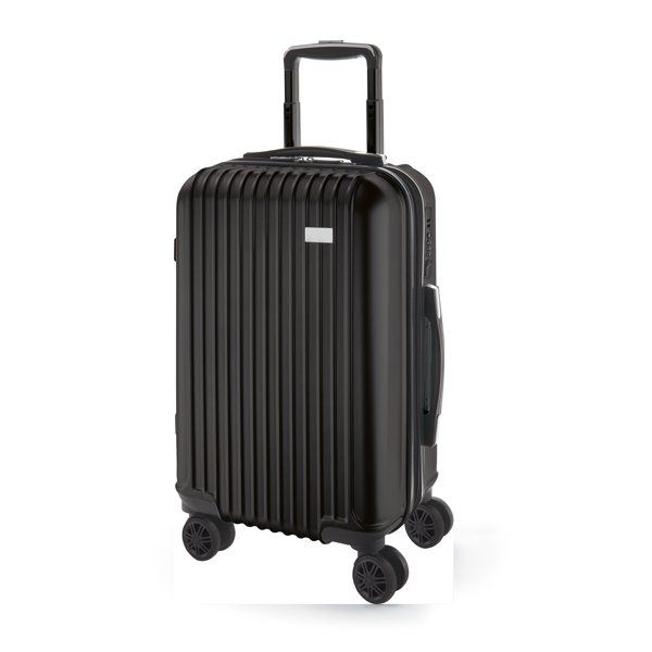 Mala de viagem executivo. ABS e PET. Interior forrado, com divisória. 4 rodas duplas giratórias. Pega extensível em alumínio, com mola (altura pega estendida: 335 mm). Fecho de segurança com senha. Placa metálica removível, para fácil gravação. Capacidade: 90 L. Peso: 4,20 kg. 500 x 775 x 290 mm | Placa: 60 x 30 mm