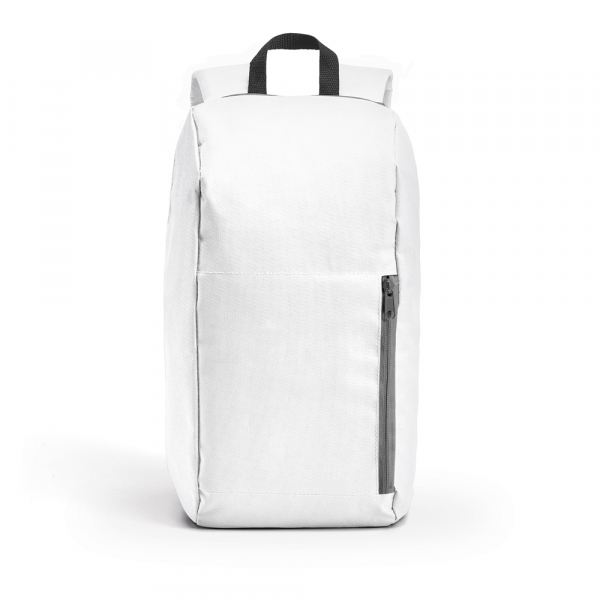 Mochila com bolso exterior frontal com zíper. Parte posterior almofadada, com sistema de apoio acolchoado para as costas e alças almofadadas. 245 x 400 x 115 mm