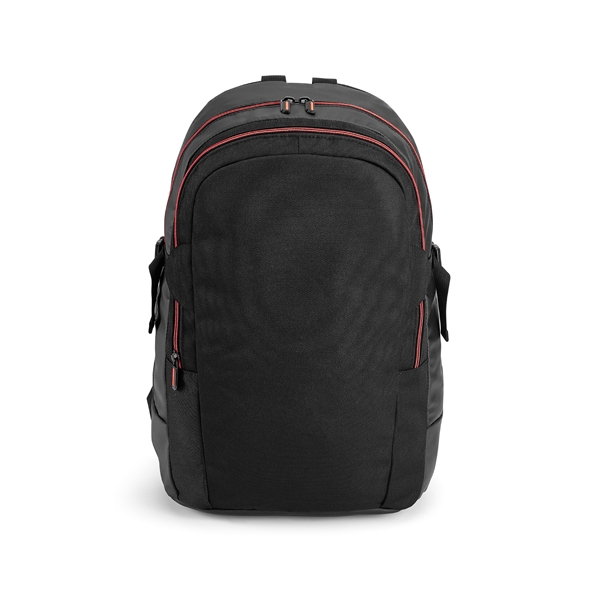 Mochila para notebook em 900D e couro sintético, com 2 compartimentos. Compartimento posterior forrado, com divisória almofadada para notebook até 17” e bolso em tela, com zíper. Compartimento frontal forrado, com diversos bolsos interiores. Parte posterior e alças almofadadas. 330 x 450 x 160 mm