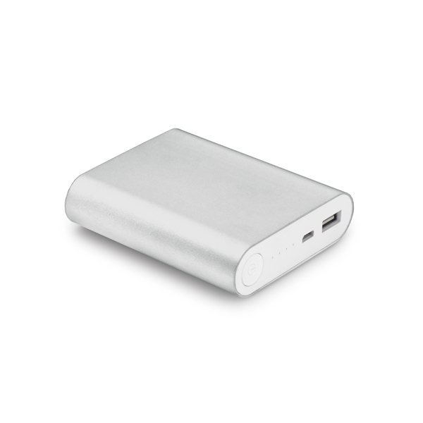 Power Bank em alumínio com capacidade de 8.000 mAh. Bateria de lítio. Tempo de vida ? 500 ciclos. Com entrada/saída 5V/1A. Incluso cabo USB/micro USB para carregar a bateria. Fornecida em caixa de oferta. 90 x 77 x 22 mm | Caixa: 110 x 85 x 25 mm
